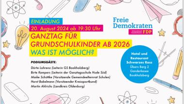 07.05.2024 Elternbefragung zu Ganztagsschulkonzepten FDP beantragt digitale Umfrage für Eltern zukünftiger Grundschüler in Ganderkesee. Mehr dazu